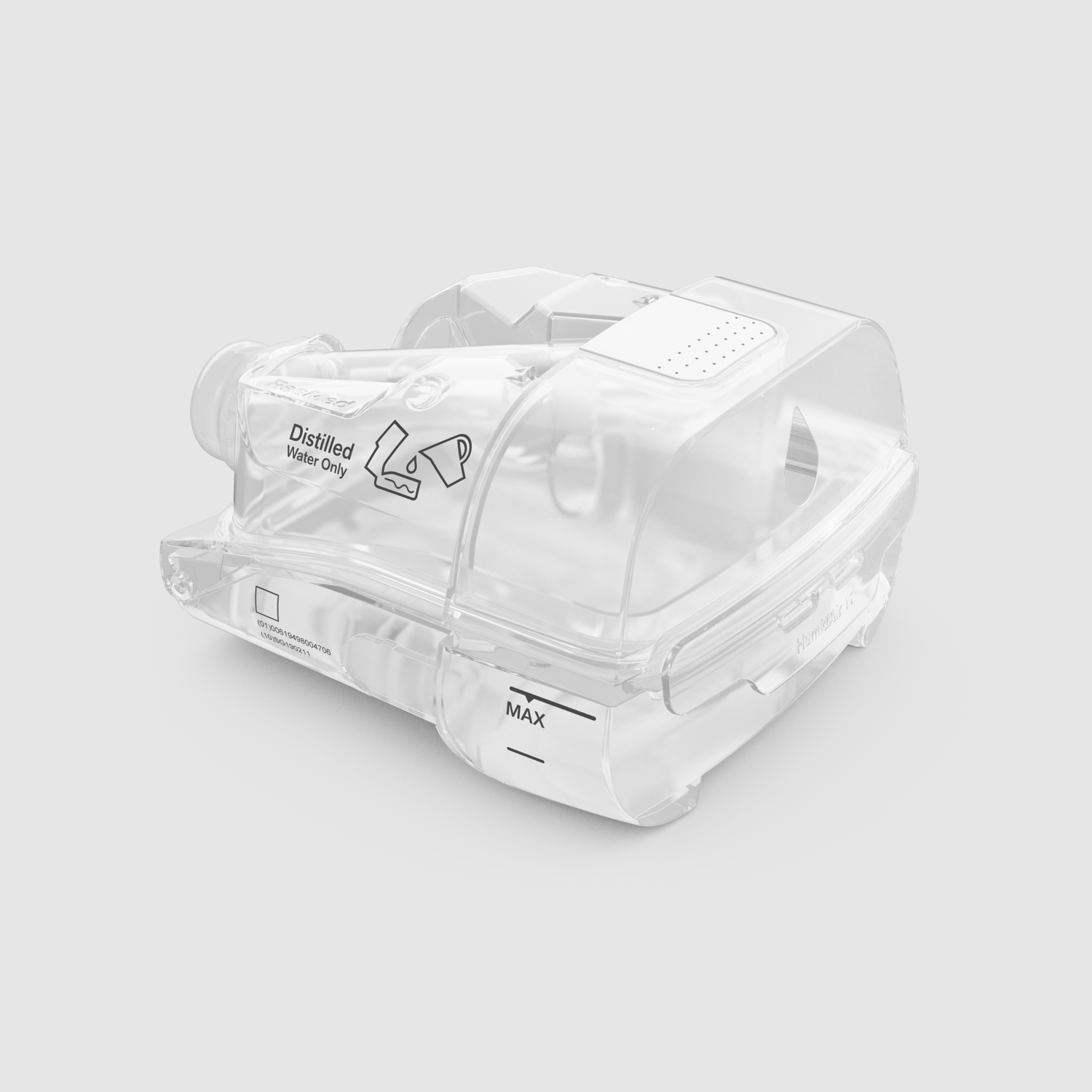AirSense 11 CPAP装置専用の、加温加湿に対応した加湿器タブ(水を入れるチャンバー)です。CPAP治療中の乾燥や不快感を軽減し、より快適な睡眠をサポートします。