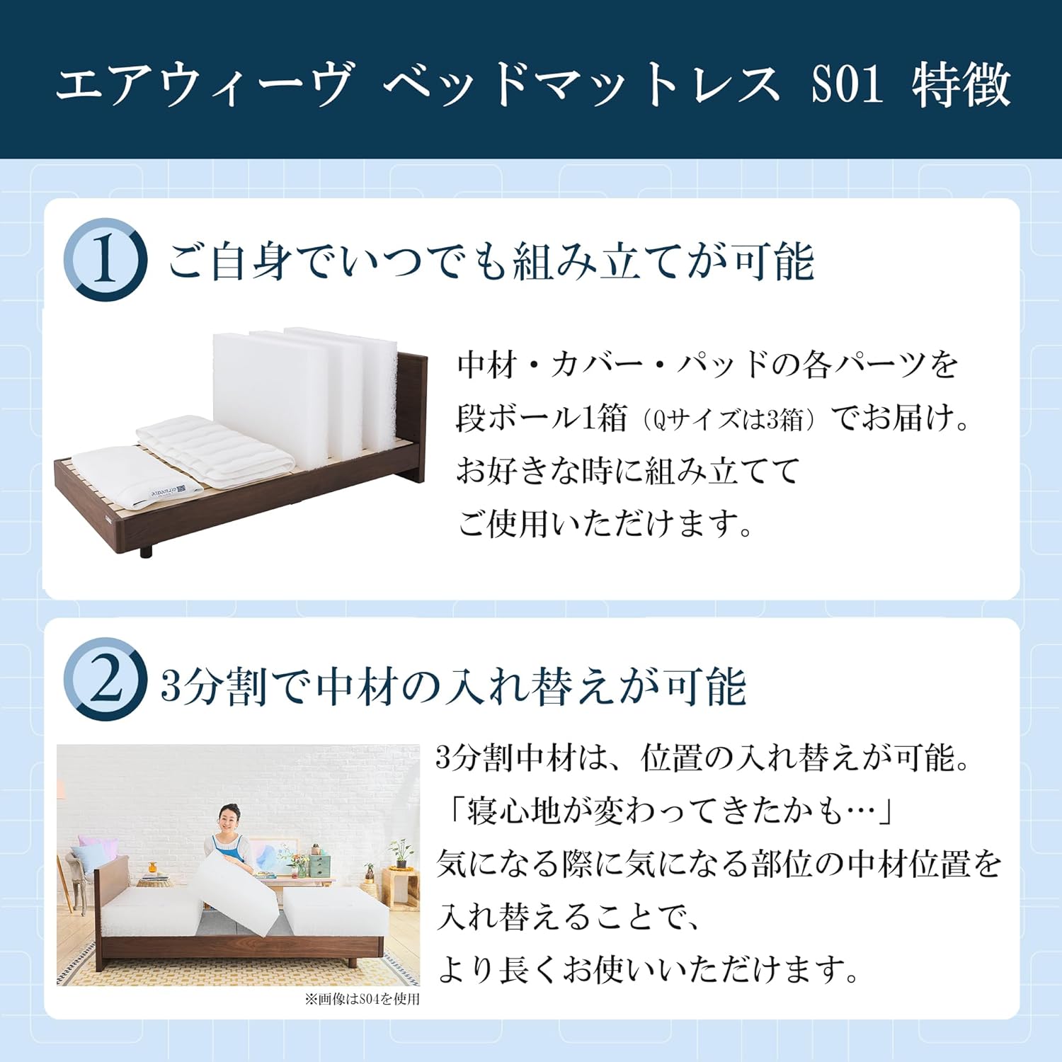 そんな願いを叶えるのが、エアウィーヴのベッドマットレスシリーズの原点である『S01』です。